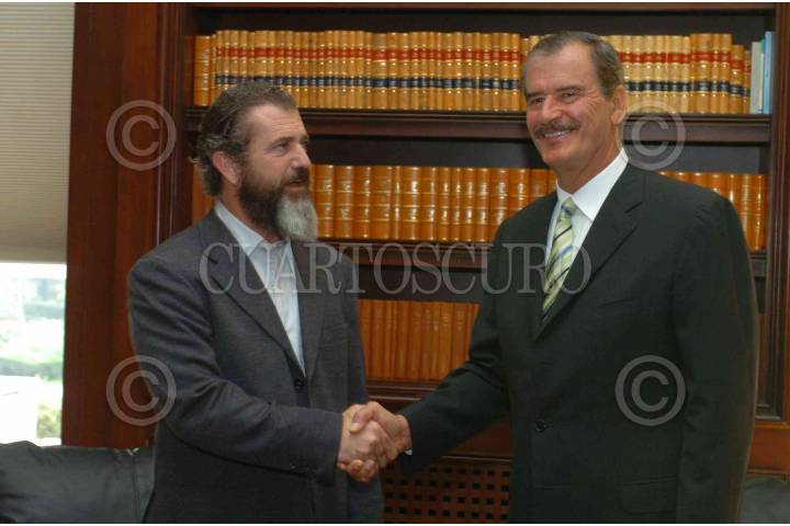 MEXICO D.F. 19OCTUBRE2005.- El actor y director de cine Mel Gibson visito al presidente Vicente Fox. El cineasta y el mandatario mexicano sustuvieron una reunion privada por quince minutos. FOTO: Gustavo Benitez/PRESIDENCIA/CUARTOSCURO.COM