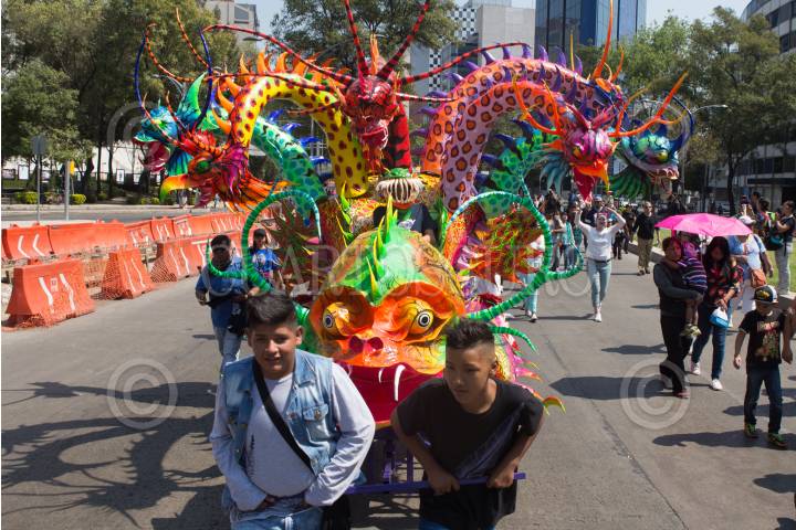 CIUDAD DE MÉXICO, 21OCTUBRE2017.- Se llevó a cabo el Desfile y Concurso de Alebrijes Monumentales, tradición en la que marcharon más de180 muñecos tradicionales de enorme tamaño del Zócalo al Ángel de la Independencia. FOTO: TERCERO DÍAZ /CUARTOSCURO.COM