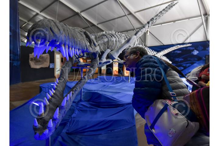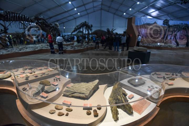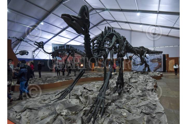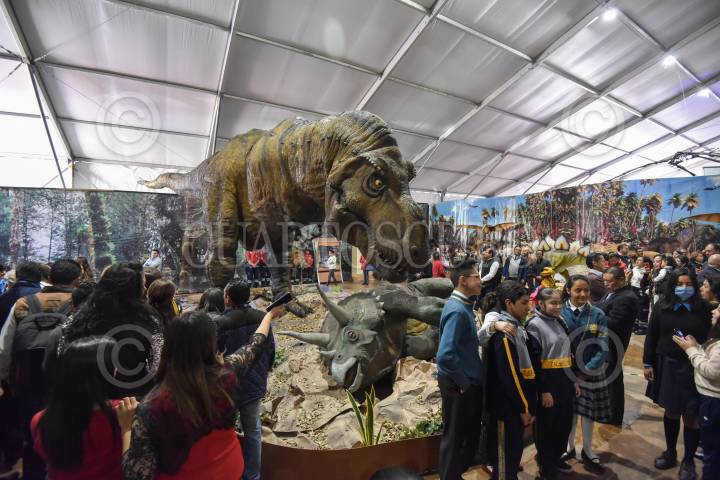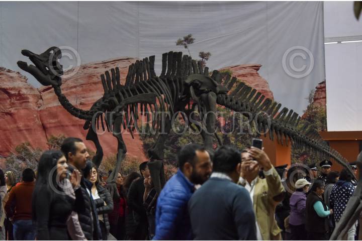 TOLUCA, ESTADO DE MÉXICO, 02DICIEMBRE2019.- Llega a Toluca la exposición itinerante “Gigantes del Desierto” procedente del Museo del Desierto, en donde los asistentes podrán disfrutar de reconstrucciones animadas de dinosaurios, esqueletos y réplicas de reptiles marinos encontrados en México, estará abierta al público del 2 de diciembre de este año hasta el 7 de enero del 2020 en la explanada del Teatro Morelos. FOTO: CRISANTA ESPINOSA AGUILAR /CUARTOSCURO.COM
