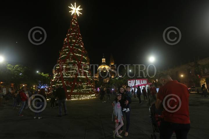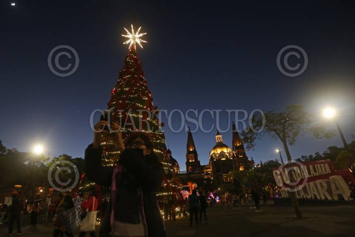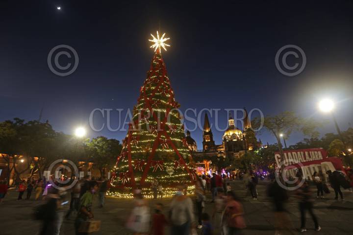 El Árbol navideño gigante se encuentra en la explanada de la Plaza de la Liberación.