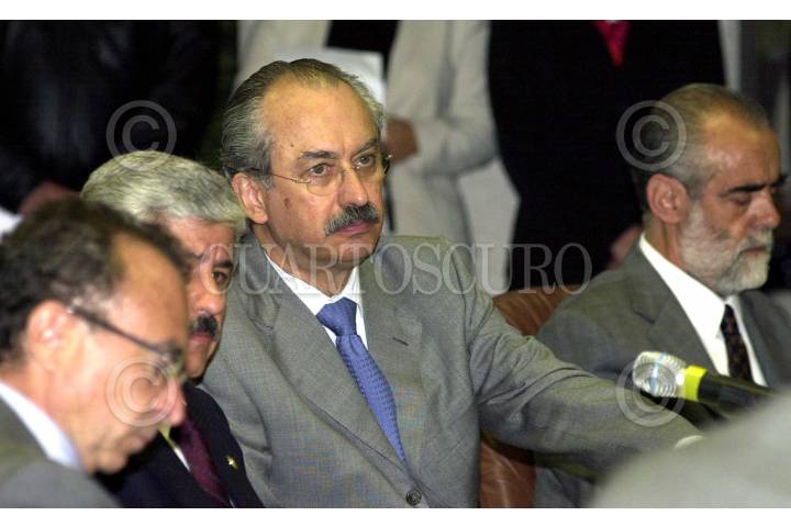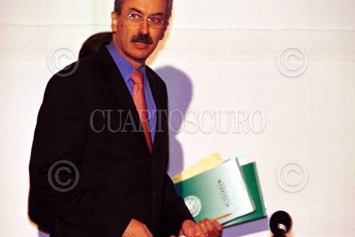 Francisco Gil Diaz, secretario de Hacienda y Crédito Público, encabezó el seminario de Perspectiva Económicas 2003 "Perspectivas Económicas 2003 y Los Riegos del Crecimiento" en el Instituto Tecnológico Autónomo de México. FOTO: Susana Navarrete/CUARTOSCURO.COM