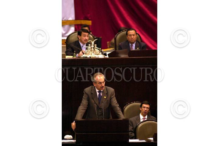 Con diferentes ataques de Diputados, el Secretario de Hacienda Francisco Gil Días, respondió a la glosa del primer informe del Presidente Vicente Fox. FOTO:Eunice Adorno/CUARTOSCURO.COM