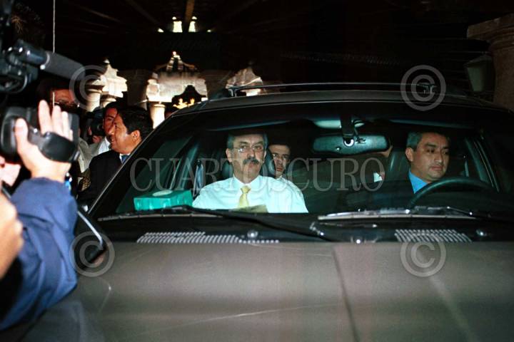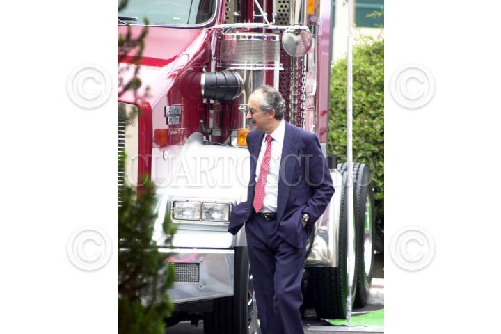 El secretario de Hacienda, Francisco Gil Díaz llega a la toma de protesta de directivos de CANACAR en el Campo Militar Marte. Ahí el presidente Fox declaró que México abrirá las puertas a los transportistas de Estados Unidos solo en condiciones de equidad con los autotransportistas mexicanos. FOTO: Juan Pablo Zamora/CUARTOSCURO.COM