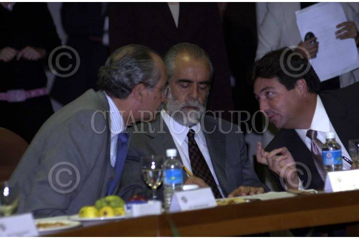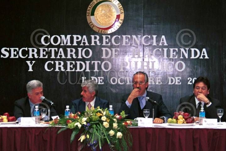 El secretario de Hacienda y Crédito Público, Francisco Gil Díaz, comparecio en el senado. En la imagen Demetrio Sodi, Fausto Handam y Alejandro Gutierrez. FOTO: Moisés Pablo/CUARTOSCURO.COM
