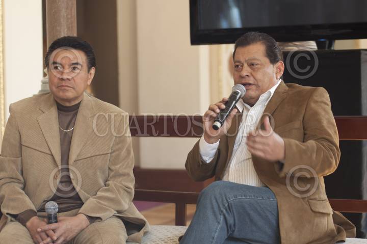 MÉXICO, D.F., 08FEBRERO2013.- Los compositores Gil Rivera y Jorge Massías, ofrecieron una conferencia de prensa para anunciar el recital "Con la misma piedra" que conmemora los 40 años de creaciones musicales de Jorge Macías Gómez, el cual se realizará el viernes 15 de febrero en el Teatro Esperanza Iris. FOTO: MOISÉS PABLO / CUARTOSCURO.COM