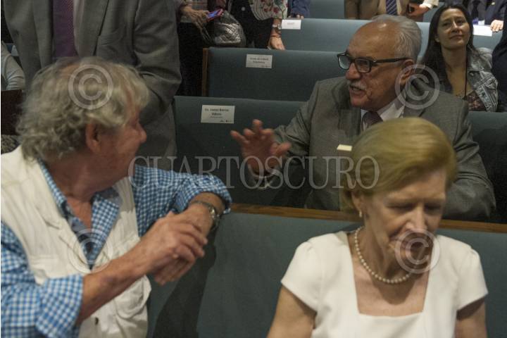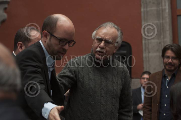 CIUDAD DE MÉXICO, 07MARZO2018.- Salvador Martínez della Rocca y Gilberto Guevara Niebla, durante la presentación del programa conmemorativo por los 50 años del Movimiento Estudiantil de 1968 "M68", que se realizó en el Centro Cultural Tlatelolco FOTO: MOISÉS PABLO /CUARTOSCURO.COM