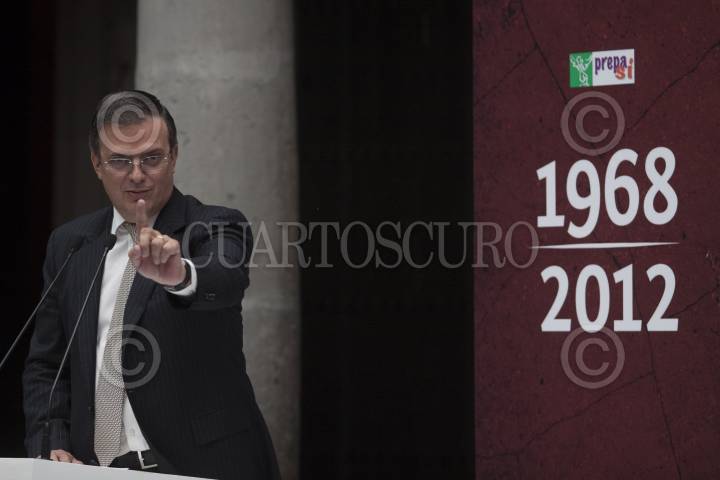 MÉXICO, D.F., 02OCTUBRE2012.- Marcelo Ebrard Casaubón, Jefe de Gobierno, encabezó una ceremonia conmemorativa de la matanza del 02 de octubre de 1968 en la Plaza de las Tres Culturas. FOTO: MOISÉS PABLO /CUARTOSCURO.COM
