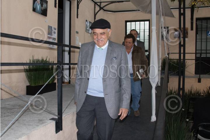 MÉXICO, D.F., 02OCTUBRE2012.- Gilberto Guevara Niebla, líder estudiantil del 68, durante la ceremonia conmemorativa de la matanza del 02 de octubre de 1968 en la Plaza de las Tres Culturas, misma que se realizó en el Museo de la Ciudad de México. FOTO: MOISÉS PABLO /CUARTOSCURO.COM