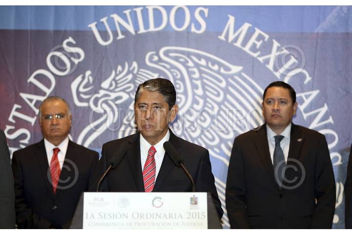 MONTERREY, NUEVO LEÓN, 09ABRIL2015.- Gilberto Higuera Bernal, subprocurador de control regional, procedimientos penales y amparo de la PGR, ofreció conferencia de prensa al término de los trabajos de la 1a sesión ordinaria 2015 de las conferencias de procuración de justicia, zonas noreste y noroeste, en su mensaje mencionó que se trabaja para atender las legitimas demandas de la sociedad. FOTO: PGR /CUARTOSCURO.COM