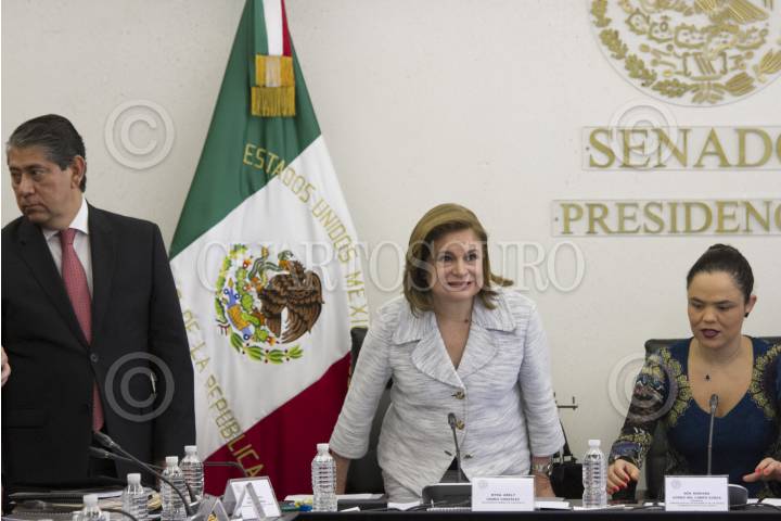 CIUDAD DE MÉXICO, 11AGOSTO2016.- Gilberto Higuera Bernal, subprocurador de Control Regional, Procedimientos Penales y Amparo de la PGR; Arely Gómez González, Procuradora General de la República, y Mariana Gómez del Campo, presidenta de la comisión especial de seguimiento de los hechos ocurridos de Nochixtlán, Oaxaca, se reunieron en privado en la sede del Senado. FOTO: MOISÉS PABLO /CUARTOSCURO.COM