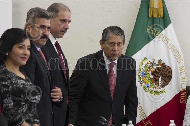 MÉXICO, D.F. 23MARZO2015.- Arely Gómez Titular de la PGR, anunció y tomo protesta a Tomás Zerón de Lucio como director de la Agencia de Investigación Criminal, Felipe de Jesús Muñoz Vázquez, subprocurador Especializado en Investigación de Delincuencia Organizada, Gilberto Higuera Bernal, subprocurador de Control Regional, Procedimientos Penales y Amparo, José Guadalupe Medina Romero, subprocurador Especializado en Investigación de Delitos Federales, César Alejandro Chávez Flores, visitador General, Samuel Valentín Jiménez Calderón, Oficial Mayor, Salvador Sandoval Silva, coordinador de Asesores y Eleana García Laguna, encargada de la Subprocuraduría de Derechos Humanos, Prevención del Delito y Servicios a la Comunidad. FOTO: SAÚL LÓPEZ /CUARTOSCURO.COM