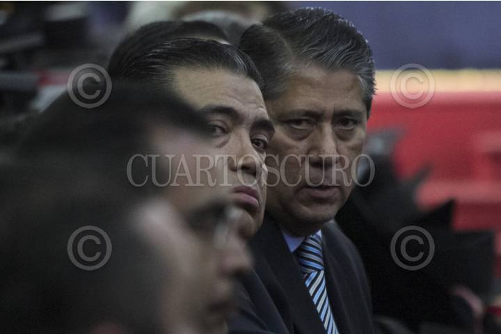 CIUDAD DE MÉXICO, 21SEPTIEMBRE2016.- Gustavo Salas Sánchez, titular de la SEIDO, y Gilberto Higuera Bernal, subprocurador de Control Regional, Procedimientos Penales y Amparo de la PGR, durante la ceremonia de ingreso a la Legión de Honor Nacional de México de la Procuardora General de la República, Arely Gómez, realizada en el Palacio de Minería. FOTO: MOISÉS PABLO /CUARTOSCURO.COM