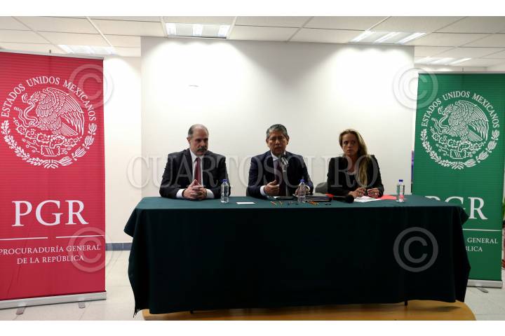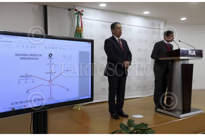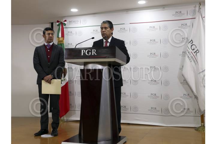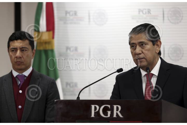 CIUDAD DE MÉXICO, 10NOVIEMBRE2016.- El Subprocurador de Control Regional, Procedimientos Penales y Amparo de la PGR, Gilberto Higuera Bernal y Crisógono Díaz Cervantes, titular de la Unidad Especializada en Análisis Financiero, ofrecieron una conferencia de prensa sobre los delitos que se le persiguen al ex gobernador de Sonora, Guillermo Padres. FOTO: PGR /CUARTOSCURO.COM