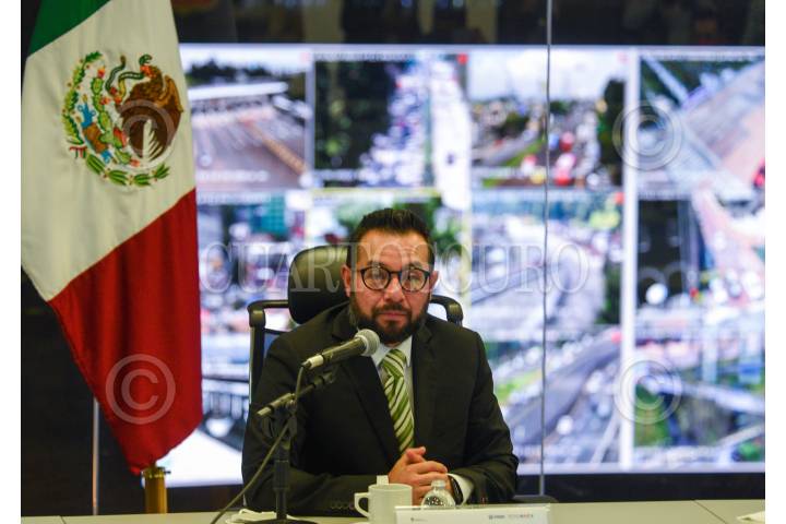 Conferencia de prensa trabajos coordinados para inhibir la delincuencia Rodrigo Sigfrid Martinez-Celis Wogau Secretario de Seguridad del Estado de México acompañado por Gilberto Javier Sauza Martínez Presidente del Consejo de Cámaras y Asociaciones Empresariales del Edomex y Mauricio Massud Martínez Presidente de CANIRAC en el Estado de México.
