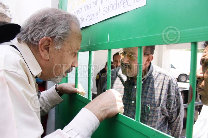 TEXCOCO, ESTADO DE MÉXICO, 18ABRIL2009.- El académico Adolfo Gilly en el penal de Molino de Flores donde se le prohibio la entrada donde se tenia previsto visitar a los 9 presos políticos de San Salvador Atenco FOTO: SÁSHENKA GUTIÉRREZ/CUARTOSCURO.COM