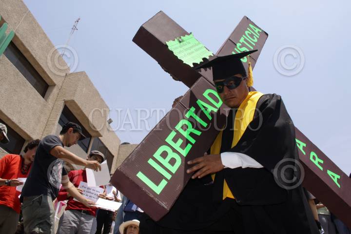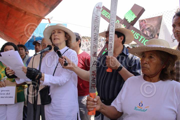 TEXCOCO, ESTADO DE MÉXICO, 18ABRIL2009.- Integrantes del Comité Libertad y Justicia para Atenco realizaron un mitin a las afueras del penal Molino de Flores donde se encuentran recluidos 9 presos políticos de San Salvador Atenco FOTO: SÁSHENKA GUTIÉRREZ/CUARTOSCURO.COM