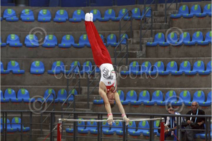 GUADALAJARA, JALISCO, 17JULIO2014.- Hoy en el Complejo Panamericano de Gimnasia se llevo a cabo el Festival Deportivo Panamericano 2014, en donde se realizaron las actividades de Gimnasia Artística Varonil, en donde la primera posición fue para Manrique Larduert de Cuba, la segunda posición para Henrique Medina de Brasil y la tercera posición para Jorge Giraldo de Colombia. En la Imagen el Mexicano Kevin Ricardo Cerda durante su participación en la justa. FOTO: FERNANDO CARRANZA GARCIA /CUARTOSCURO.COM