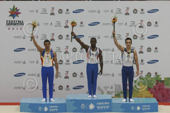 GUADALAJARA, JALISCO, 17JULIO2014.- Hoy en el Complejo Panamericano de Gimnasia se llevo a cabo el Festival Deportivo Panamericano 2014, en donde se realizaron las actividades de Gimnasia Artística Varonil, en donde la primera posición fue para Manrique Larduert de Cuba, la segunda posición para Henrique Medina de Brasil y la tercera posición para Jorge Giraldo de Colombia. FOTO: FERNANDO CARRANZA GARCIA /CUARTOSCURO.COM
