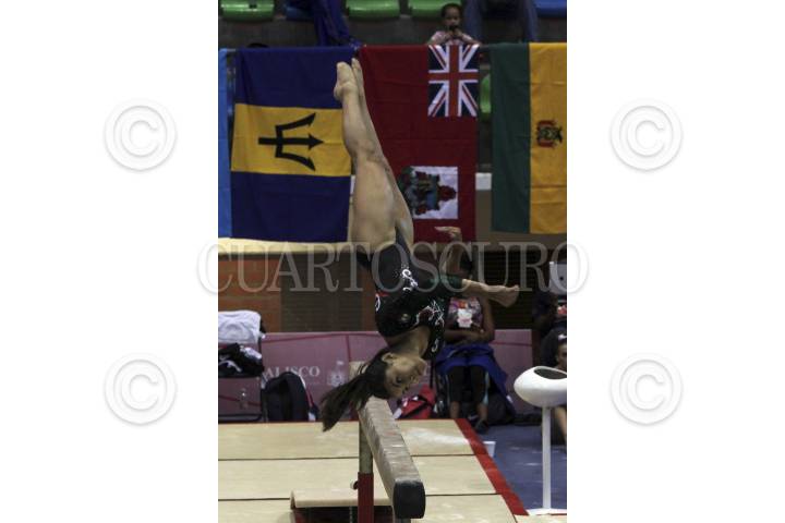 GUADALAJARA, JALISCO, 17JULIO2014.- Hoy en el Complejo Panamericano de Gimnasia se llevo a cabo el Festival Deportivo Panamericano 2014, en donde se realizaron las actividades de Gimnasia Artística Femenil, en donde la primera posición fue para Yesenia Ferrera de Cuba, la segunda posición para Ayelen Tarabini de Argentina y la tercera posición para Ahtziri Sandoval de México. En la imagen la Mexicana Ahtziri Sandoval durante su participación en la justa. FOTO: FERNANDO CARRANZA GARCIA /CUARTOSCURO.COM
