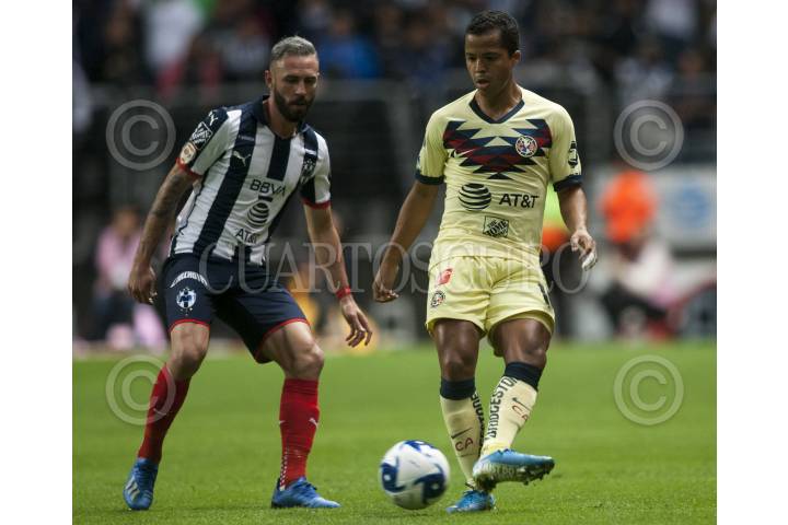 MONTERREY, NUEVO LEÓN, 22FEBRERO2020.- Miguel Layún del equipo de los Rayados del Monterrey se diputa el balón con Giovani Dos Santos del equipo de las Águilas del América, en el estadio BBVA Bancomer, partido correspondiente a la jornada 7 de la Liga MX, Clausura 2020. Marcador Final: Monterrey: 0 - América: 1 FOTO: GABRIELA PÉREZ MONTIEL /CUARTOSCURO.COM