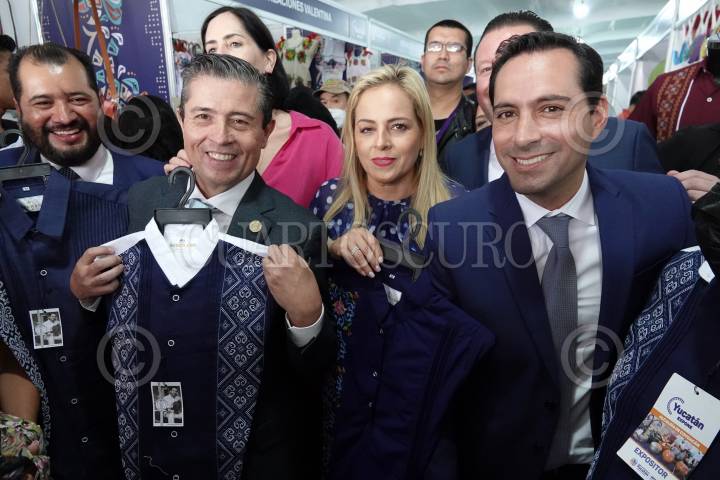 Luis Gerardo Quijano, alcalde de Magdalena Contreras; Lía Limón, alcaldesa de Álvaro Obregón; Giovanni Gutiérrez, alcalde de Coyoacán, y su esposa, y Mauricio Vila Dosal, gobernador de Yucatán, y Giovanni Gutiérrez, alcalde de Coyoacán, durante la Feria "Yucatán Expone", realizado en la explanada de esta demarcación
