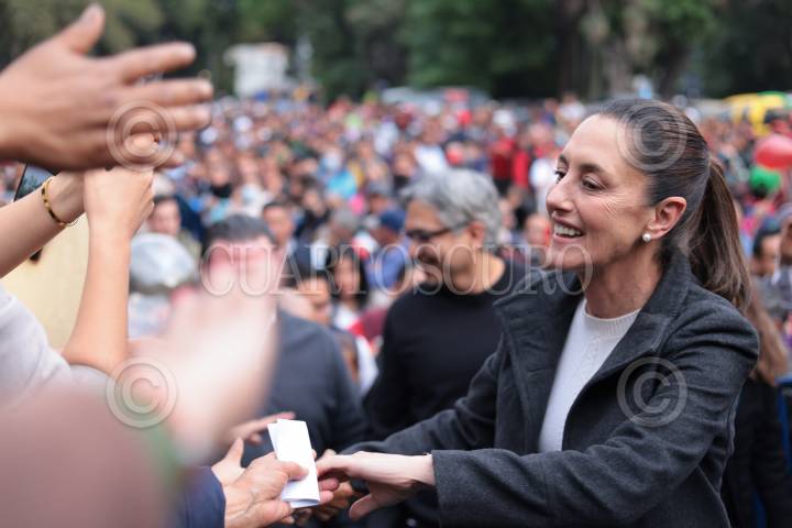 Claudia Sheinbaum durante la entrega de resultados y gira de trabajo por la alcaldía Magdalena Contreras.