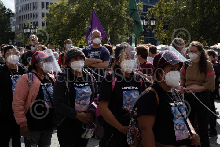 Manifestación frente a la embajada de México donde participaron zapatistas, exigiendo la presentación con vida de dos compañeros.