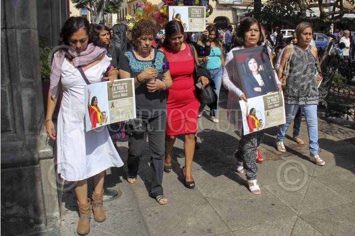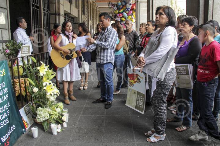 CUERNAVACA, MORELOS, 04ENERO2015.- Integrantes de la Red Observatorio por la Paridad condenaron el asesinato de Gisela Mota Ocampo, presidenta municipal de Temixco y colocaron en la ofrenda de víctimas su fotografía, flores, veladoras y cantaron canciones de protesta exigiendo justicia para Gisela. FOTO: PATRICIA MORALES /CUARTOSCURO.COM