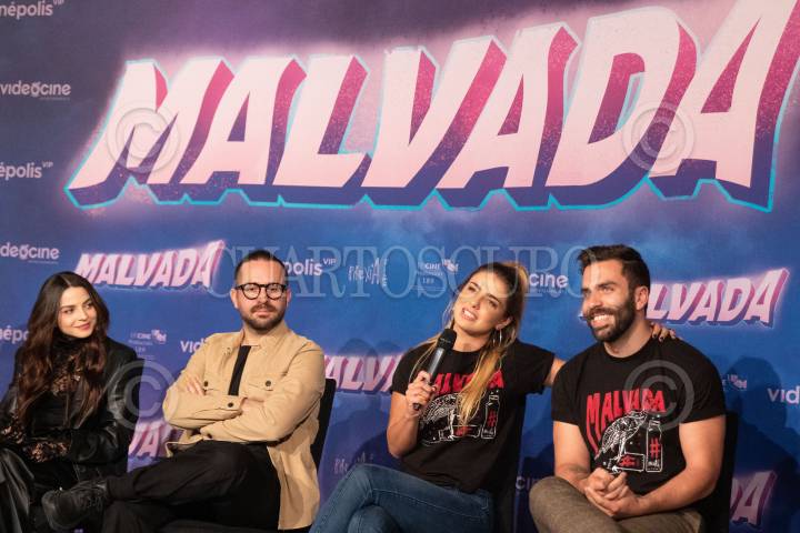 Gisselle Kuri, José Manuel Cravioto, Michelle Renaud, y Guiseppe Gamba, durante la rueda de prensa de la cinta "Malvada".