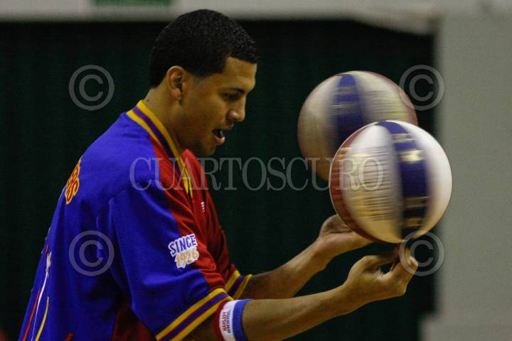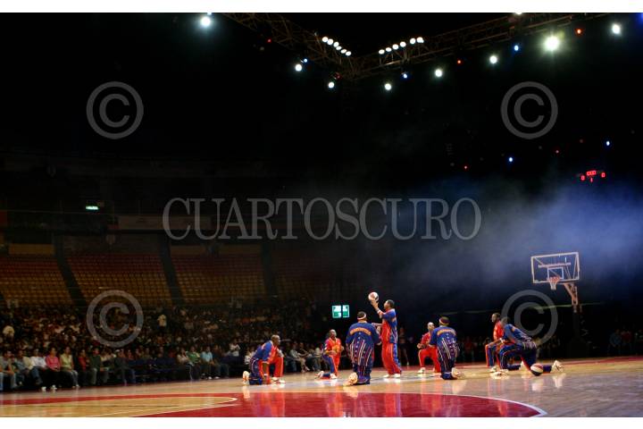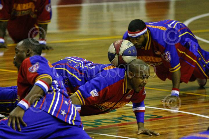 PUEBLA, PUEBLA, 31JULIO2010.- El espectáculo de baloncesto, "The Harlem Globetrotters", se presentó en el Gimnasio Miguel Hidalgo de esta ciudad, en la que los atletas demostraron con sus habilidades y acrobacias en el dominio del balón dejando sorprendido al público asistente. FOTO: FRANCISCO GUASCO/CUARTOSCURO.COM