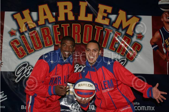 MÉXICO D.F., 08OCTUBRE2008.- Bucket Blakes y Blenda Rodrigez, ambos integrantes del equipo de baloncesto, Harlem Globetrotters, durante la conferencia que realizarón con el fin de promocionar su proxima presentación en el Palacio de los Deportes. FOTO: ENRIQUE ORDÓÑEZ/CUARTOSCURO.COM