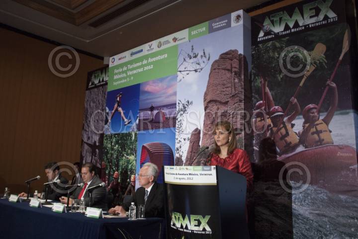 MÉXICO, D.F., 21AGOSTO2012.- Gloria Guevara Manzo, secretaría de Turismo, durante la presentación del Adventure Travel México que se llevara a cabo del 5 al 9 de septiembre de 2012 en el WTC de Boca del Río. FOTO: MOISÉS PABLO /CUARTOSCURO.COM