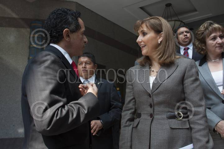 MÉXICO, D.F., 30NOVIEMBRE2012.- La secretaria de Turismo, Gloria Guevara Manzo, lanzó hoy el programa de Turismo de Salud, mediante el cual se promoverá a México para que sea visitado por las personas que viajan a otro país para recibir algún tratamiento médico. En el acto, celebrado en el Consejo de Promoción Turística, Guevara Manzo entregó certificados de "Pueblo Mágico" a Jalpa, Salvatierra y Yuridia, Guanajuato; El Rosario, Sinaloa; al Centro Tradicional de Tecate, Baja California; a Arteaga y Viesca, Coahuila; a la Comunidad de Jala, Nayarit; y a Jicotepec de Juárez, Puebla. En la imagen la titular de turismo concersa con el gobernador Rafael Moreno Valle. FOTO: MOISÉS PABLO /CUARTOSCURO.COM