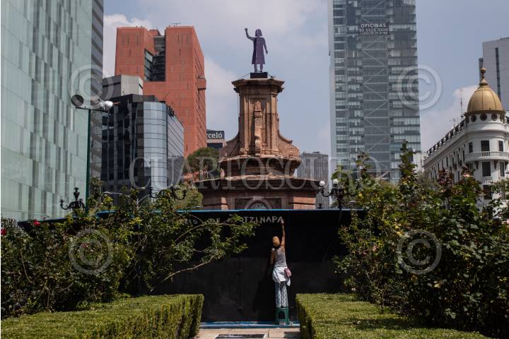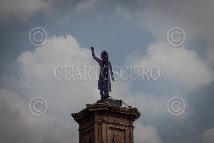 Mujeres se organizan para resguardar la Glorieta Colón nombrada por colectivas feministas como La Glorieta de Mujeres que Luchan esto para evitar que se retire la estatuidla en forma de mujer ya que hace unos días autoridades avisaron que se retiraría para poner una estatua en homenaje a mujer indígena el 12 de octubre.