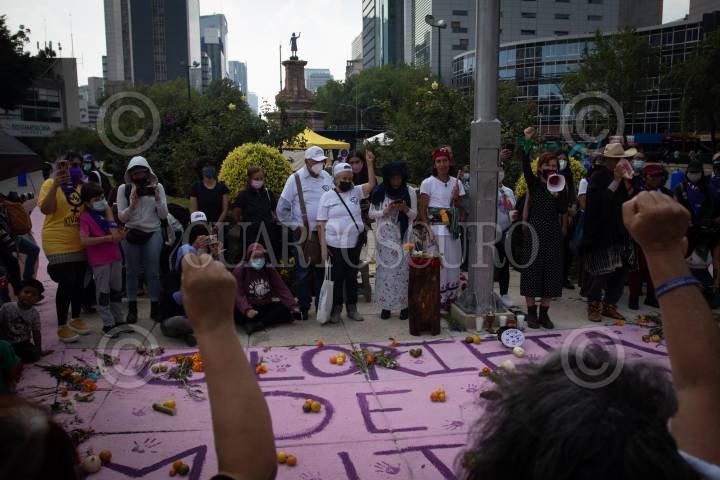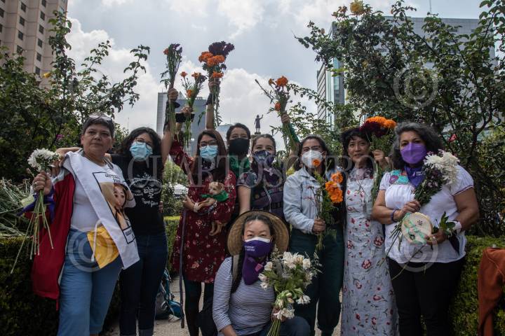 Madres y familiares de víctimas, sobrevivientes de feminicidio y desaparición forzada, acompañada de colectivas feministas y defensoras de derechos humanos, realizaron una ofrenda para renombrar a la glorieta de Colón ubicada en Avenida Reforma como