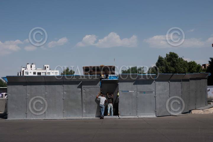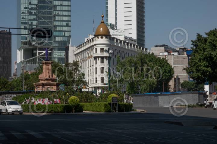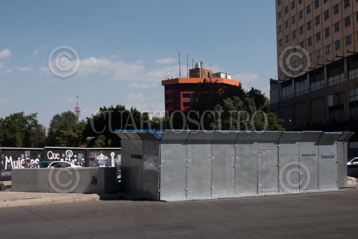 Trabajadores colocaron vallas metálicas donde será colocada la escultura de Amajac a un costado de la Glorieta de las mujeres que luchan en Paseo de la Reforma