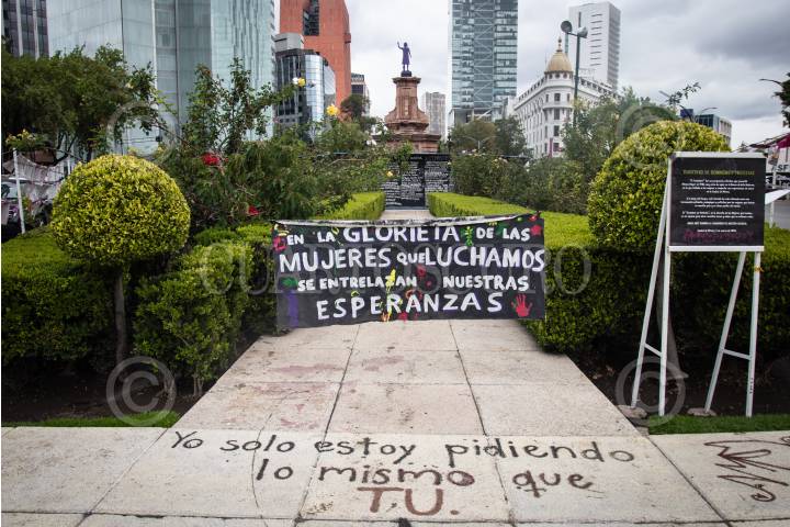 Mujeres se organizan para resguardar la Glorieta Colón nombrada por colectivas feministas como La Glorieta de Mujeres que Luchan esto para evitar que se retire la estatuidla en forma de mujer ya que hace unos días autoridades avisaron que se retiraría para poner una estatua en homenaje a mujer indígena el 12 de octubre.