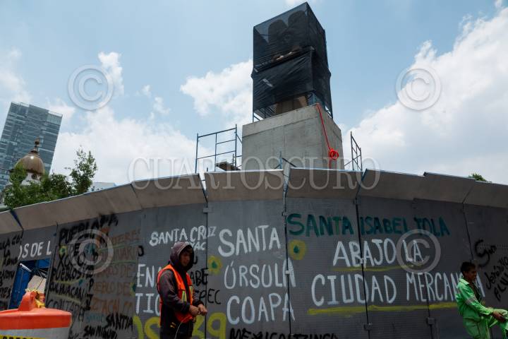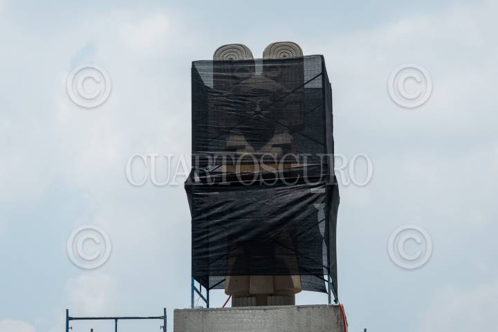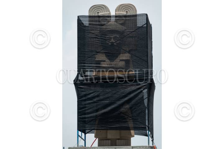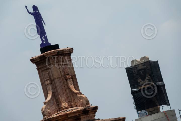 Instalan la escultura de la joven de Amajac a un costado de la nombra Glorieta de las Mujeres que Luchan.