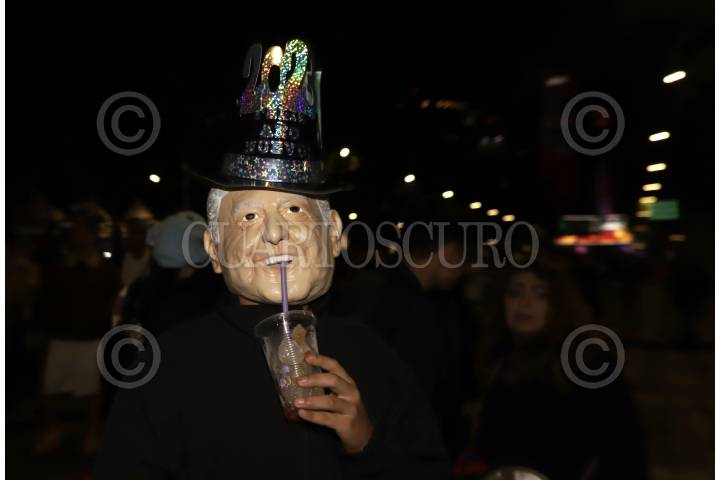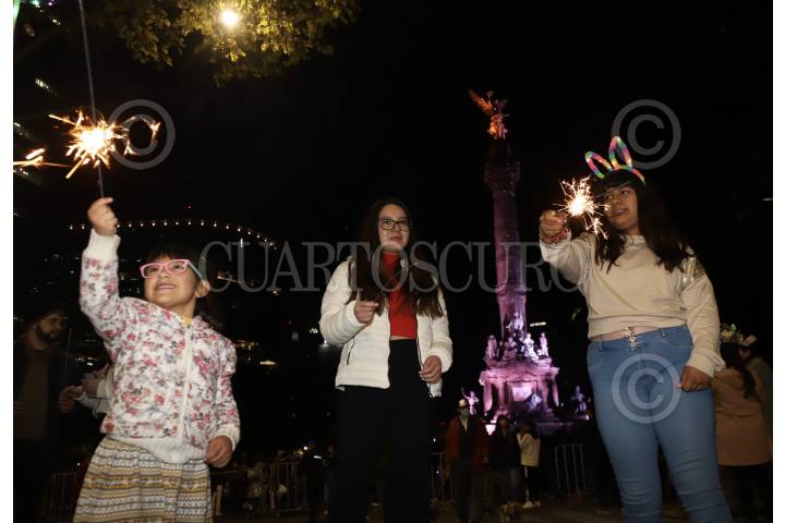 Habitantes y visitantes durante los festejos por el Año Nuevo 2023, celebrados en Paseo de la Reforma.