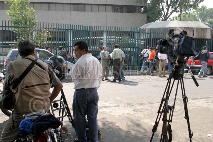 MEXICO, D.F., 27ABRIL2006.- Reporteros y camarográfos se quedaron esperando una imagen y declaración del gobernador Mario Marín, que compareció ante la PGR por el caso Lydia Cacho. El llamado gober precioso se escabulló evitando cualquier declaración. FOTO: Moisés Pablo/CUARTOSCURO.COM