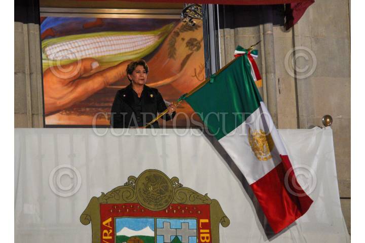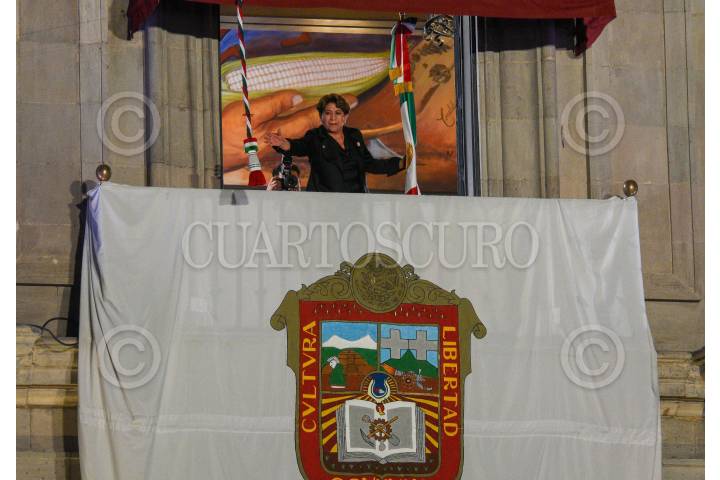 TOLUCA, ESTADO DE MÉXICO, 15SEPTIEMBRE2024.- Delfina Gómez Álvarez, Gobernadora del Estado de México durante la ceremoni del 214 Aniversario del Grito de Independencia desde Palacio de Gobierno en la Capital mexiquense. FOTO: CRISANTA ESPINOSA AGUILAR /CUARTOSCURO.COM