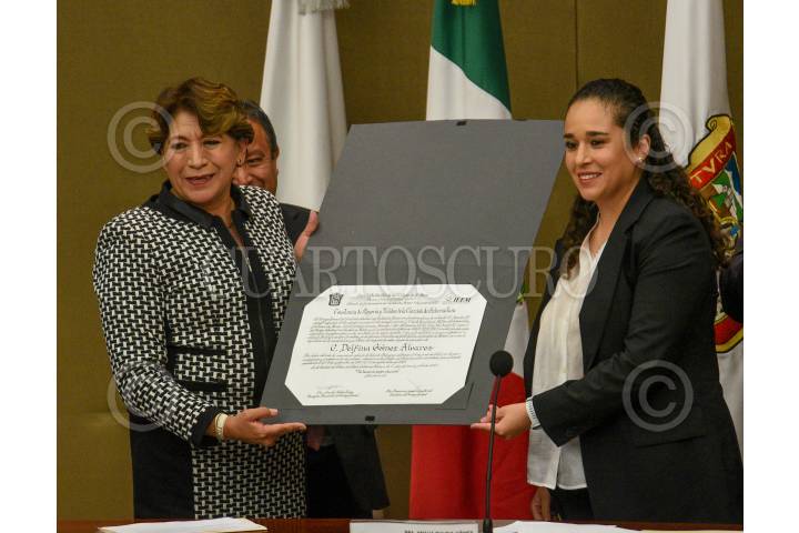 El IEEM entregó la Constancia de Mayoría como Gobernadora del Estado de México a Delfina Gómez.