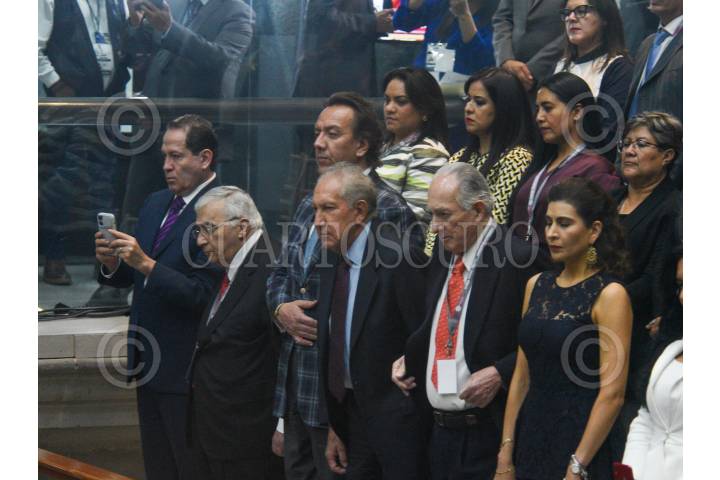 TOLUCA, ESTADO DE MÉXICO, 14SEPTIEMBRE2023.- Los ex gobernadores mexiquenses Eruviel Avila Villega, Emilio Chuayffet Chemor, Arturo Montiel, Alfredo Baranda, durante la toma de protesta de Delfina Gómez Álvarez como Gobernadora del Estado de México durante la Sesión Solemne de la LXI Legislatura Local, estuvo acompañada por el Presidente de México Andrés Manuel López Obrador. FOTO: CRISANTA ESPINOSA AGUILAR /CUARTOSCURO.COM