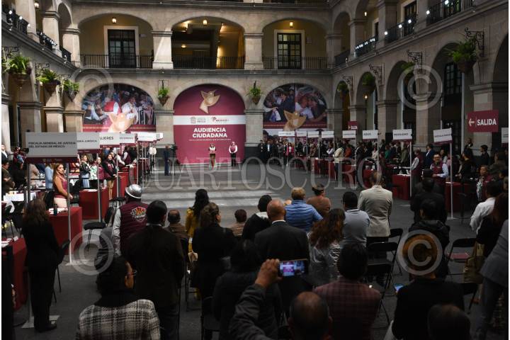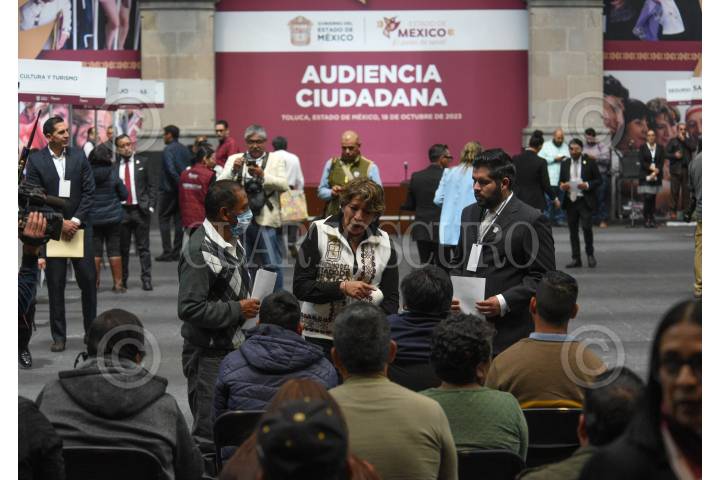 TOLUCA, ESTADO DE MÉXICO, 18OCTUBRE2023.- Desde temprana hora personas de diversos municipios acudieron a Palacio de Gobierno a la Primera Audiencia Ciudadana encabezada por Delfina Gómez Álvarez Gobernadora del Estado de México en Palacio de Gobierno en donde conoció de manera directa las necesidades de la población, los secretarios del gobierno mexiquense atendieron a los ciudadanos conforme fueron pasando. FOTO: CRISANTA ESPINOSA AGUILAR /CUARTOSCURO.COM