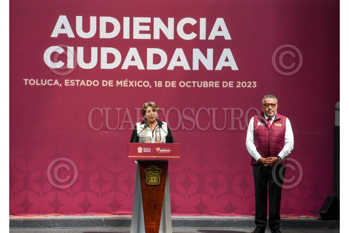 TOLUCA, ESTADO DE MÉXICO, 18OCTUBRE2023.- Delfina Gómez Álvarez Gobernadora del Estado de México encabezó la Primera Audiencia Ciudadana en Palacio de Gobierno en donde conoció de manera directa las necesidades de la población, los secretarios del gobierno mexiquense atendieron a los ciudadanos conforme fueron pasando. FOTO: CRISANTA ESPINOSA AGUILAR /CUARTOSCURO.COM