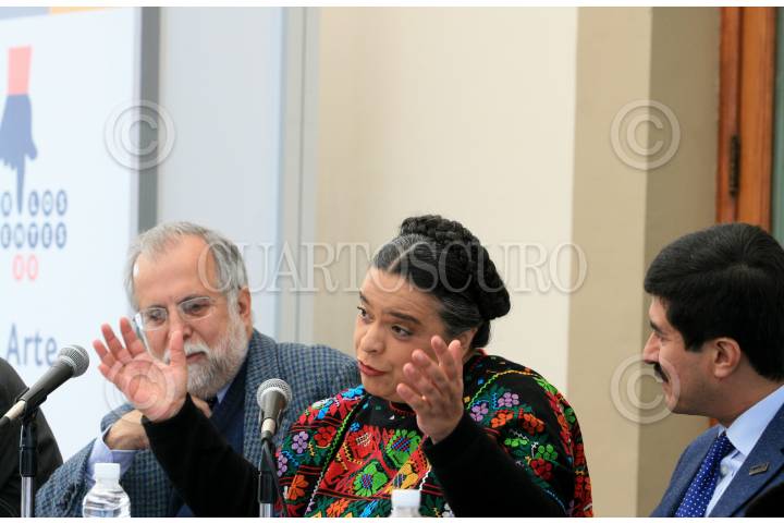 MÉXICO, D.F., 22NOVIEMBRE2008.- Beatriz Paredes Rangel, dirigente nacional del PRI, participó en la mesa de análisis "El Arte de Gobernar" y que forma parte de las actividades culturales del homenaje a el escritor "Carlos Fuentes 80", el evento lo organizó la SEP y tuvo lugar en el Castillo de Chapultepec. La flanquena Javier Garciadiego y Javier Corral. FOTO: MOISÉS PABLO/CUARTOSCURO.COM