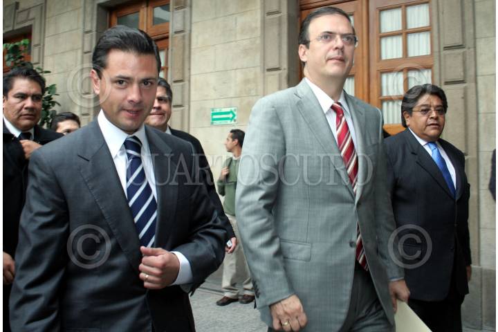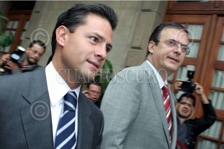 MÉXICO, D.F. 10JULIO2007.- El jefe de goberno capitalino, Marcelo Ebrard Casaubón y el gobernador del Estado de México, Enrique Peña Nieto a su llegada al Antigua Palacio del Ayuntamiento, donde firmaron un acuerdo para la creación de la comisión metropolitana de finanzas. FOTO: PAOLA HIDALGO/CUARTOSCURO.COM