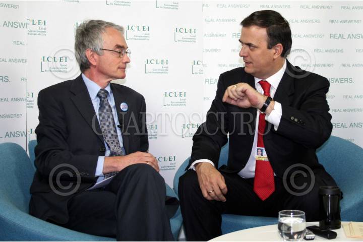COPENHAGEN, DINAMARCA 14DICIEMBRE2009.-Konrad Otto Zimmermann y Marcelo Ebrard Casaubond en el panel "Times for real questions", que organizó ICLEI. FOTO: CUARTOSCURO.COM