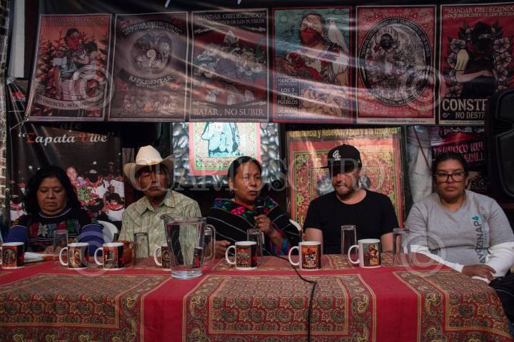 CIUDAD DE MÉXICO, 28SEPTIEMBRE2018.- María de Jesús Patricio Ramírez, Vocera del Concejo Indígena de Gobierno ofreció conferencia de prensa en el café Zapata Vive, para presentar los carteles ilustración sobre los 7 principios zapatistas, los cuales se pusieron a la venta en los cafés Zapatistas del país para recaudar fondos para las comunidades indígenas. FOTO: ANDREA MURCIA /CUARTOSCURO.COM