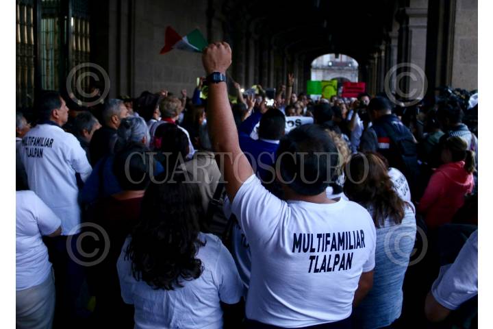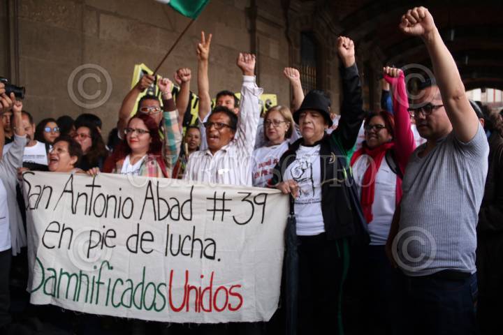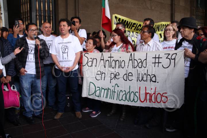 CIUDAD DE MÉXICO, 08OCTUBRE2018.- Afectados del sismo del 19 de septiembre del 2017 se manifestaron a las afueras de las inmediaciones del antiguo palacio de Gobierno previo a reunión con el secretario de Gobierno para exigir que se cumpla el poder acceder al dinero destinado a la reconstrucción de sus viviendas como el jefe de Gobierno José Ramón Amieva había asegurado meses anteriores. FOTO: ANDREA MURCIA /CUARTOSCURO.COM